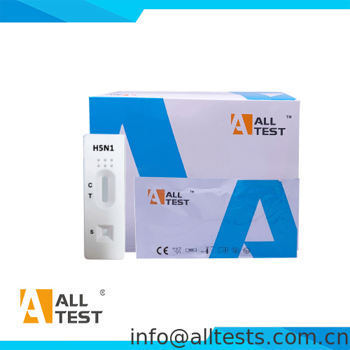 H5N1 avian influenza, a highly pathogenic subtype of Influenza A, is a zoonotic disease with a 2-8 day incubation period (typically 2-5 days). lt causes influenza-like symptoms, including high fever (>38°C), lower respiratory issues, and sometimes diarrhea, vomiting,abdominal pain, pleuritic pain,and bleeding from the nose or gums. AllTest H5N1 Rapid Test series detects the bacterium in swabs using a membrane-based immunoassay.