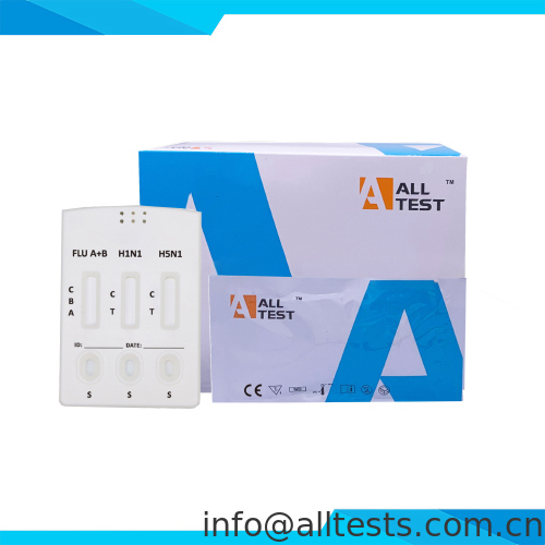 The Influenza A/B+H1N1+H5N1 Antigen Combo Rapid Test (Swab) is a rapid chromatographic immunoassay for the qualitative detection of Influenza type A, type B, A (H1N1) and A (H5N1) antigen in human nasopharyngeal swab or throat swab specimens. Results are for the detection of Influenza type A, type B, A (H1N1) and A (H5N1) antigen. Positive results do not rule out bacterial infection or co-infection with other viruses. The agent detected may not be the definite cause of disease. Negative results do not preclude Influenza type A, type B, A (H1N1) and A (H5N1) infection and should not be used as the sole basis for treatment or patient management decisions.